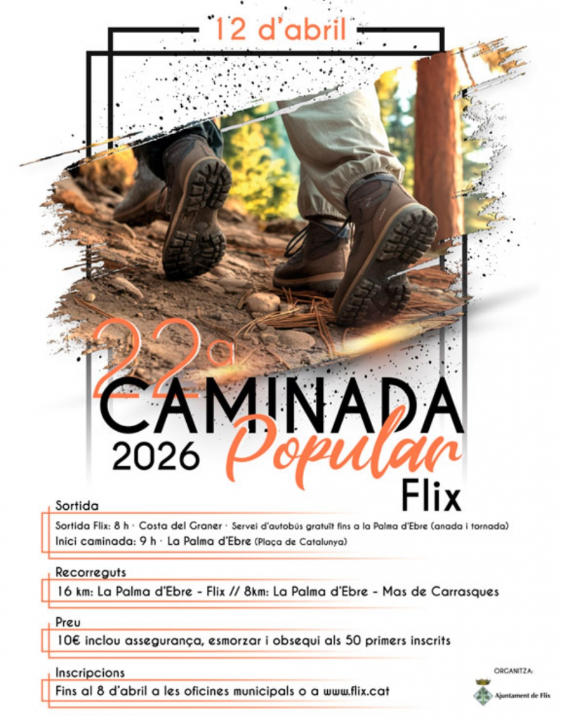 📅 Inscripcions fins al 8 d’abril a les oficines municipals o a www.flix.cat